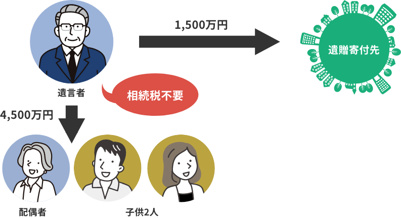 1,500万円を非営利団体に遺贈寄付して、残りの4,500万円を相続人に相続させた場合